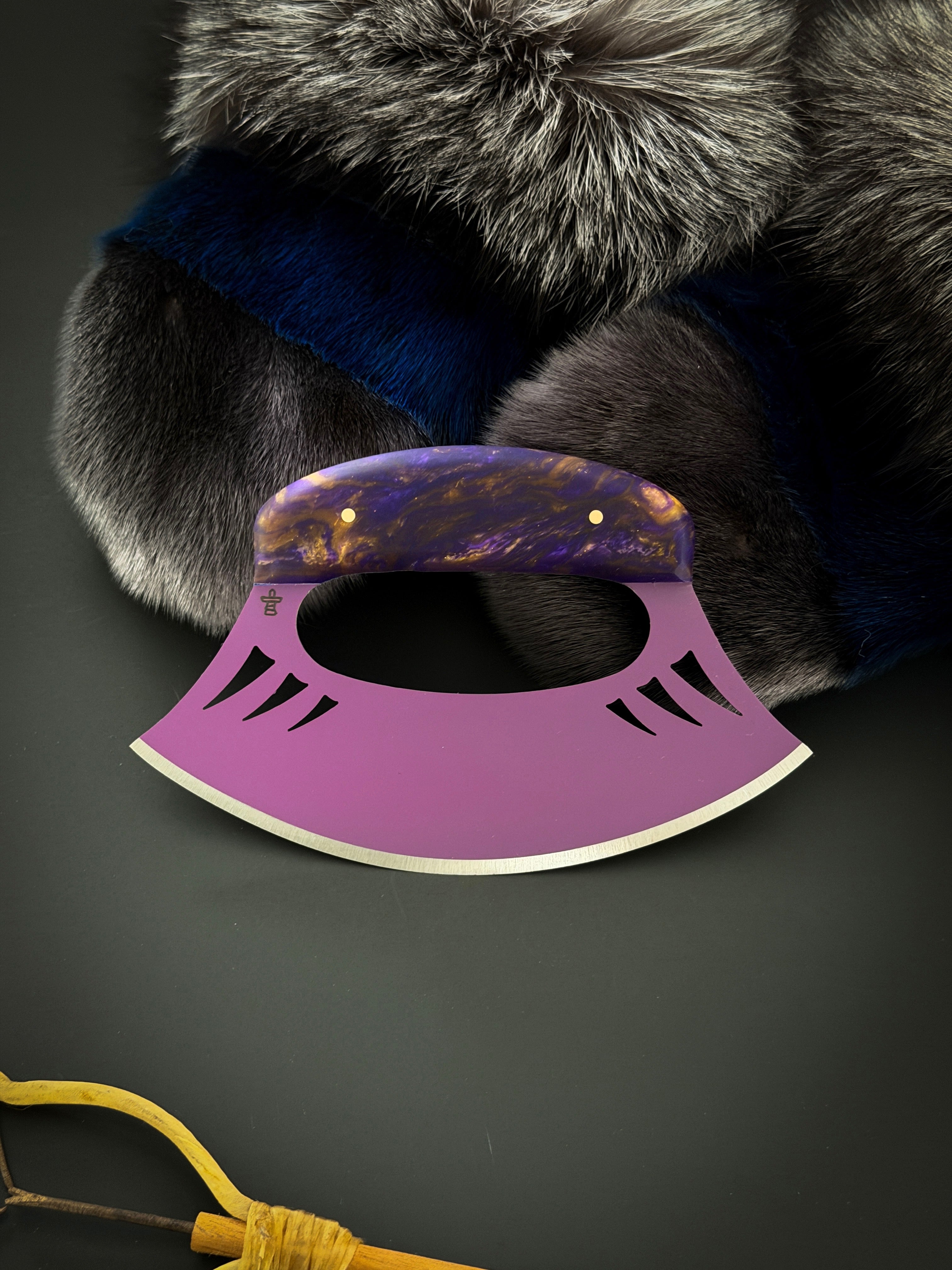 Experience the ultimate precision and control with Inu-vations Inc's handcrafted Purple Predator Alaskan Style Uluit. Choose from various handle options for the perfect fit and enjoy the lasting strength and beauty of this modern take on a traditional tool. Bring a taste of the Arctic home with every precise cut.